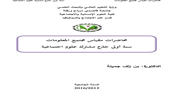 محاضرات مقياس مجتمع المعلومات Pdf سنة أولى علوم إجتماعية