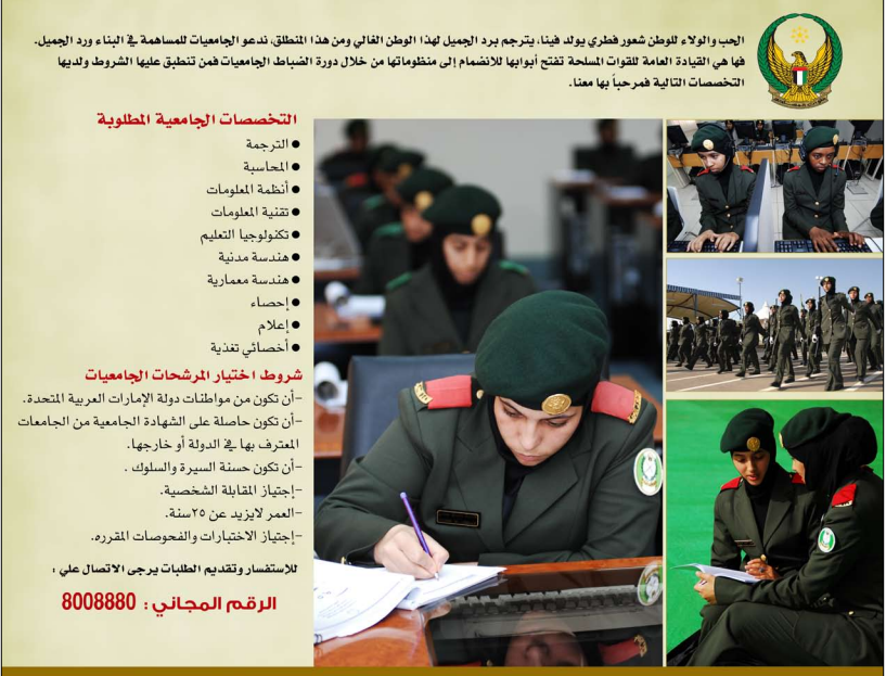 عاجل تجنيد عدد من المواطنين والمواطنات القيادة العامة للقوات المسلحة بدولة الإمارات بالصفة المدنية وظائف الامارات والخليج وظائف شاغرة