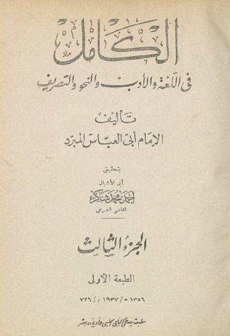 الكامل في اللغة والأدب أبو العباس المبرد ط البابي الحلبي Pdf