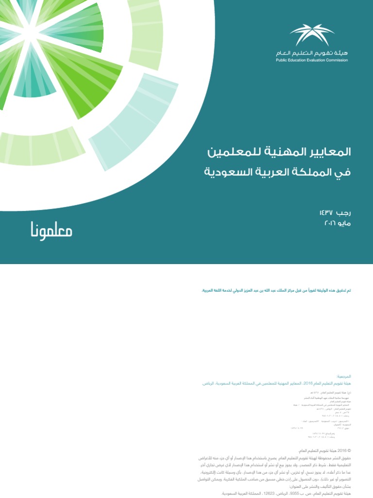 المعايير المهنية للمعلمين في المملكة العربية السعودية Pdf Free Download
