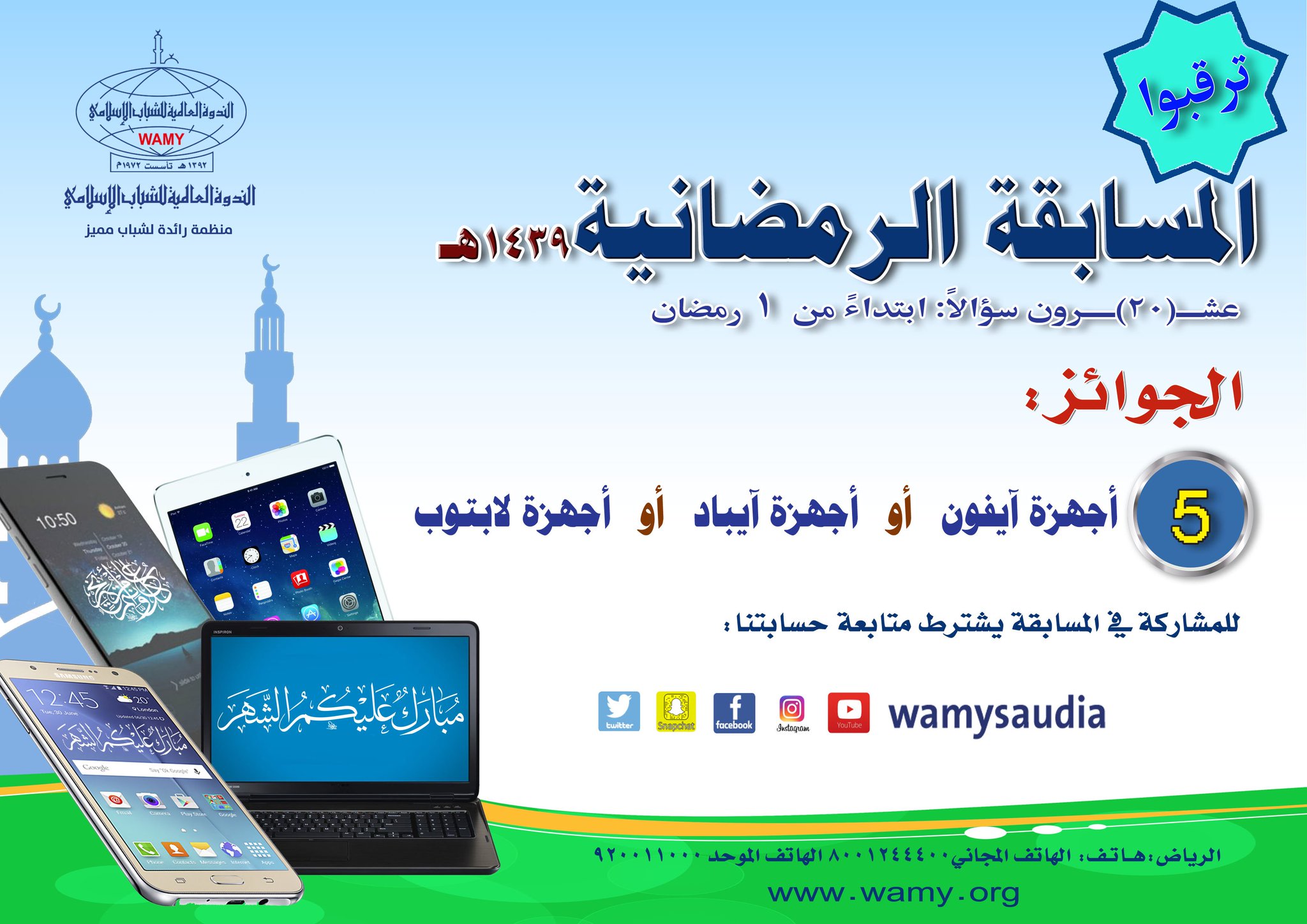 الندوة العالمية Wamy On Twitter ترقبوا ابتداء من 1 رمضان بمشيئة الله تعالى الندوة العالمية للشباب الإسلامي تطلق المسابقة الرمضانية للندوة العالمية 1439 عبر موقعها الإلكتروني Https T Co W4hipqlpfn وعلى حساباتها في تويتر وانستقرام