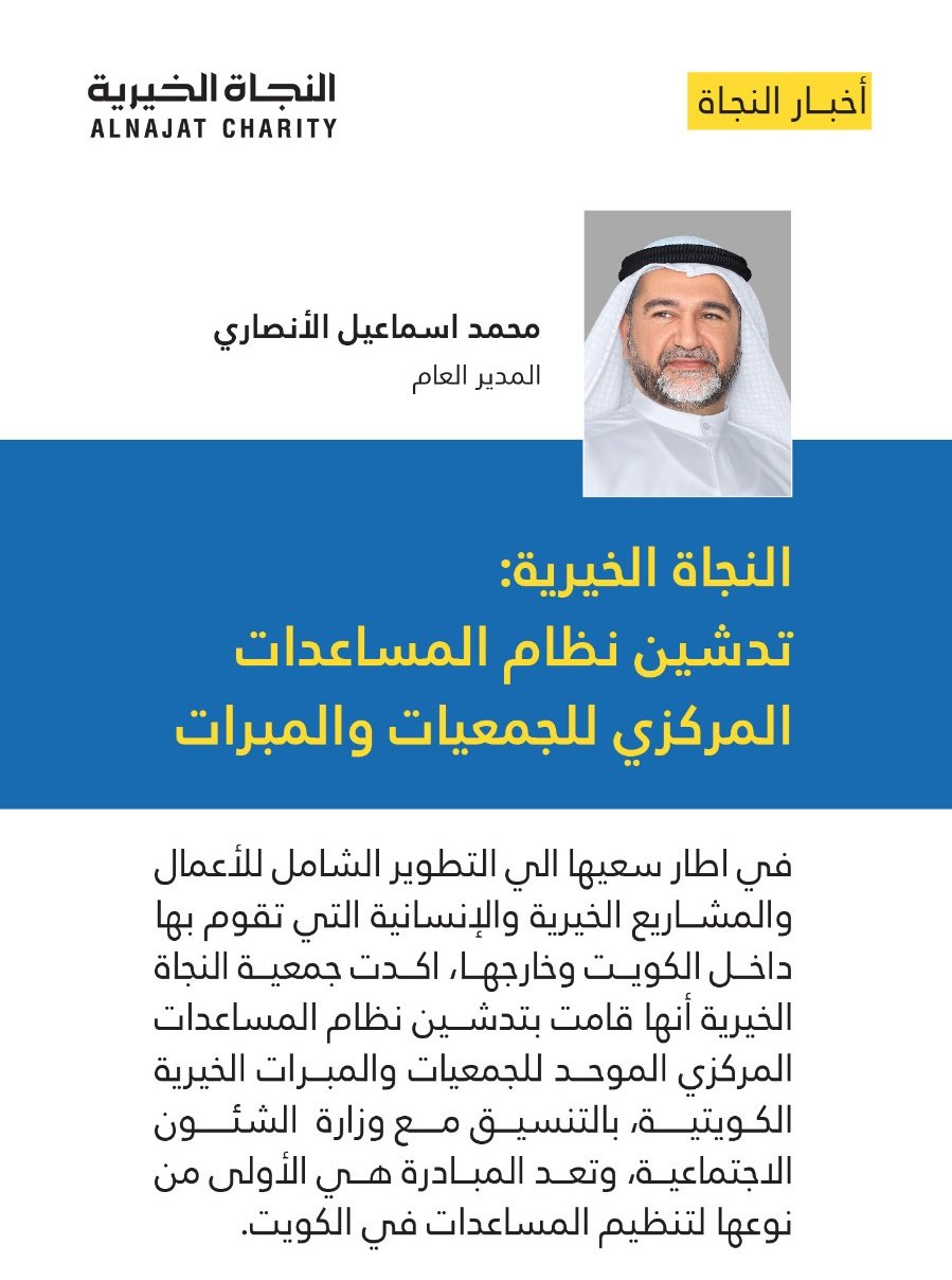 جمعية النجاة الخيرية الكويتية ت طلق نظام المساعدات المركزي الموحد للجمعيات والمبرات الخيرية