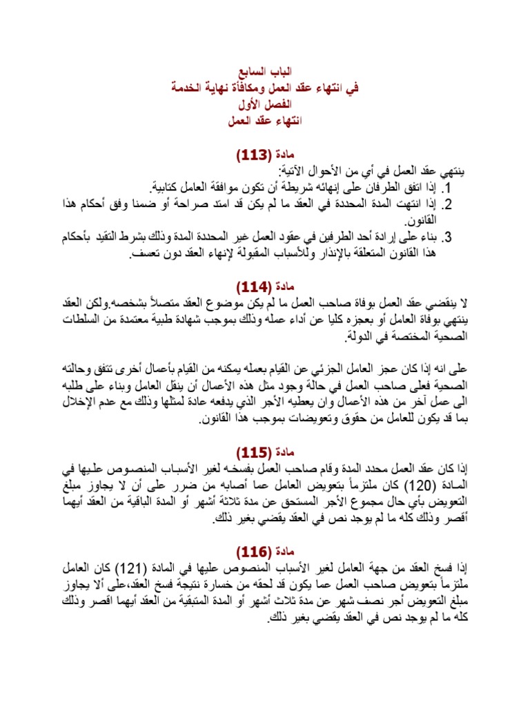 الباب السابع في انتهاء عقد العمل ومكافأة نهاية الخدمة 2