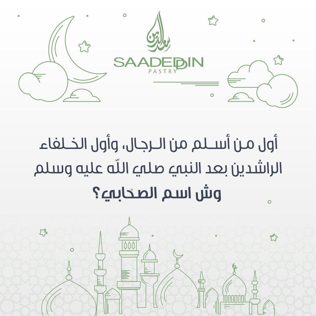 O Xrhsths Saadeddinpastry حلويات سعدالدين Sto Twitter أول من أسلم من الرجال وأول الخلفاء الراشدين بعد النبي صلي الله عليه وسلم وش اسم الصحابي شارك واربح مع سعدالدين كوبون بـ 200