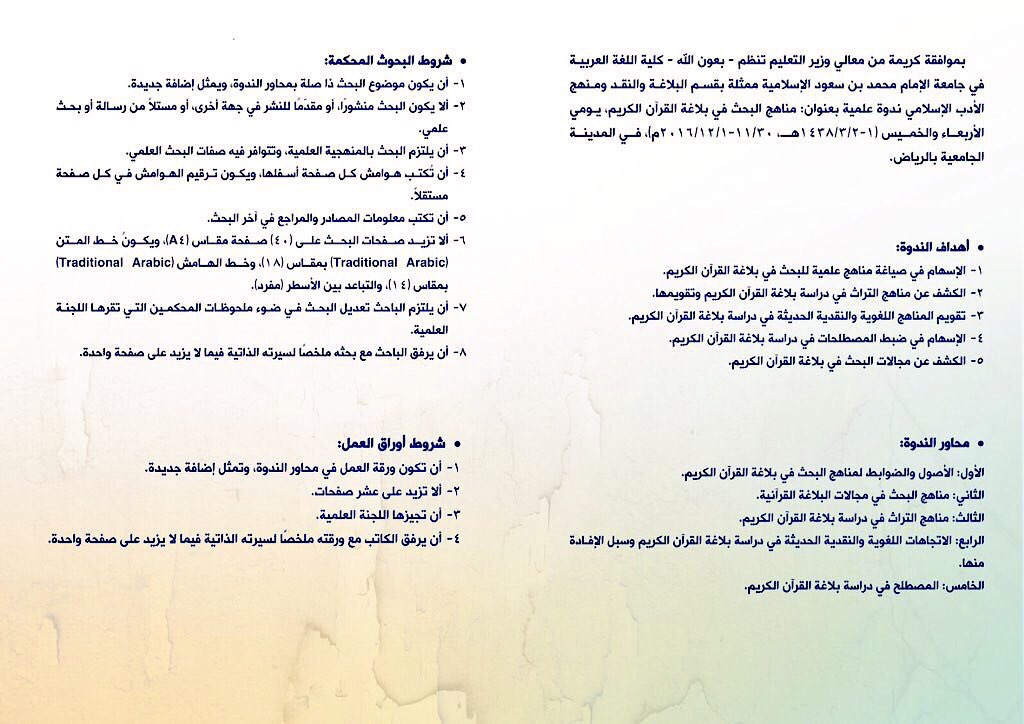 كلية اللغة العربية On Twitter كلية اللغة العربية تقيم ندوة مناهج البحث في بلاغة القرآن الكريم مطلع ربيع الأول القادم ندوة مناهج البحث في بلاغة القرآن الكريم Https T Co Gs8f3kscjl
