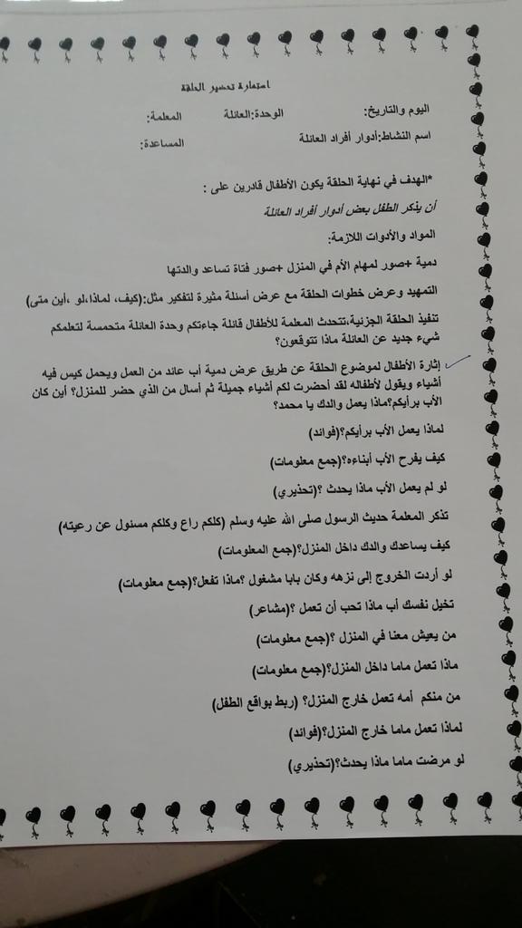 تحضير حلقة آداب التعامل مع أفراد العائلة بالطريقة الإستقصائية وحدة العائلة رياض أطفال