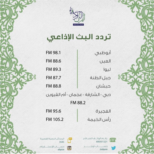 إذاعــة القــرآن V Twitter يستفتونك تابعونا عبر أثير إذاعة القرآن الكريم من أبوظبي في برنامج يستفتونك من الساعه٥ ٠٠م ولغايه ٦ ٣٠م إنستقرام Adquran عبر الموقع الالكتروني Https T Co 457iunrppd Https T Co Yicfqov81h