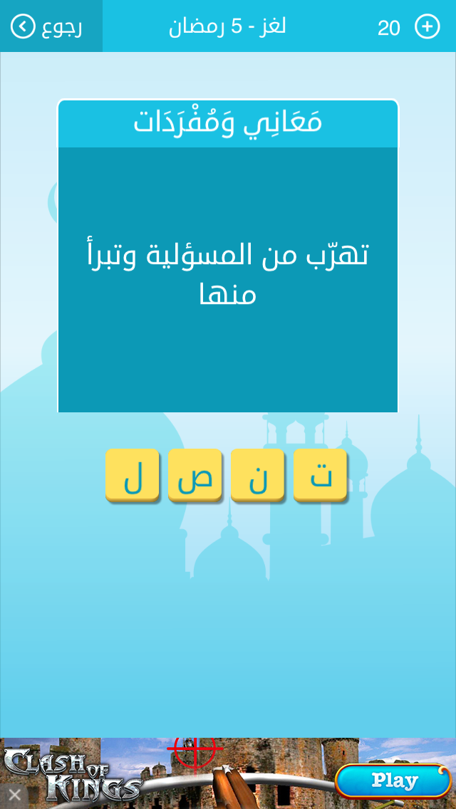 حل سؤال تهرب من المسؤولية وتبرأ منها من لغز 5 رمضان من لعبة رشفة رمضانية صقور الإبدآع