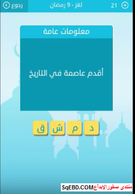 اجابة لغز أقدم عاصمة في التاريخ من لغز 9 رمضان من لعبة رشفة رمضانية صقور الإبدآع